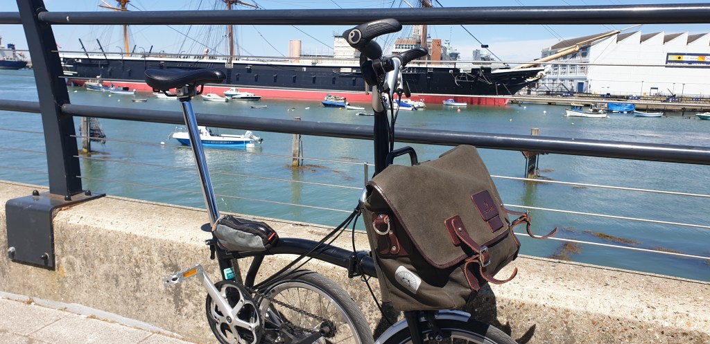 Now, it shames me to say that prior to 2018 that I was indeed a ‘smirker’. I was one of those smug, self-righteous sorts, who upon viewing a gent or lady perched upon one of those popular, diminutive-wheeled, folding bicycles, would carry upon my fizzog what could only be described as a wry & condescending smirk. But such was my ignorance, & frankly juvenile attitude, that at the time I failed to comprehend the sheer practical magnificence of this fine velocipede. So what changed my mind, I hear you ask. Well, it was during an outing to Tenby with my eldest, that I spied a gent & his companion disembarking a train with what looked to my untrained eye, like a pair of folded wheelchairs. But as I watched on from the carriage somewhat perplexed, within what seemed like a matter of seconds, the pair had unfolded not a pair of wheelchairs, but a pair of rather nifty Brompton bicycles.